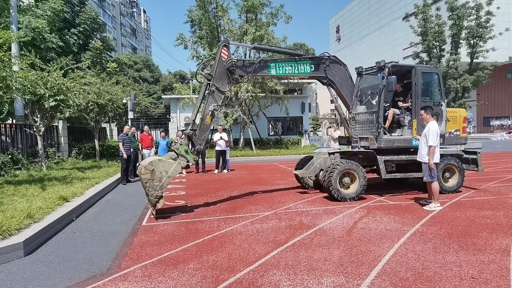 2025年7月9日麓湖小学塑胶跑道面层及篮球场面层铲除中