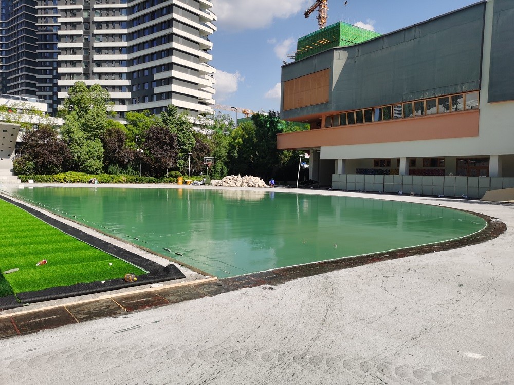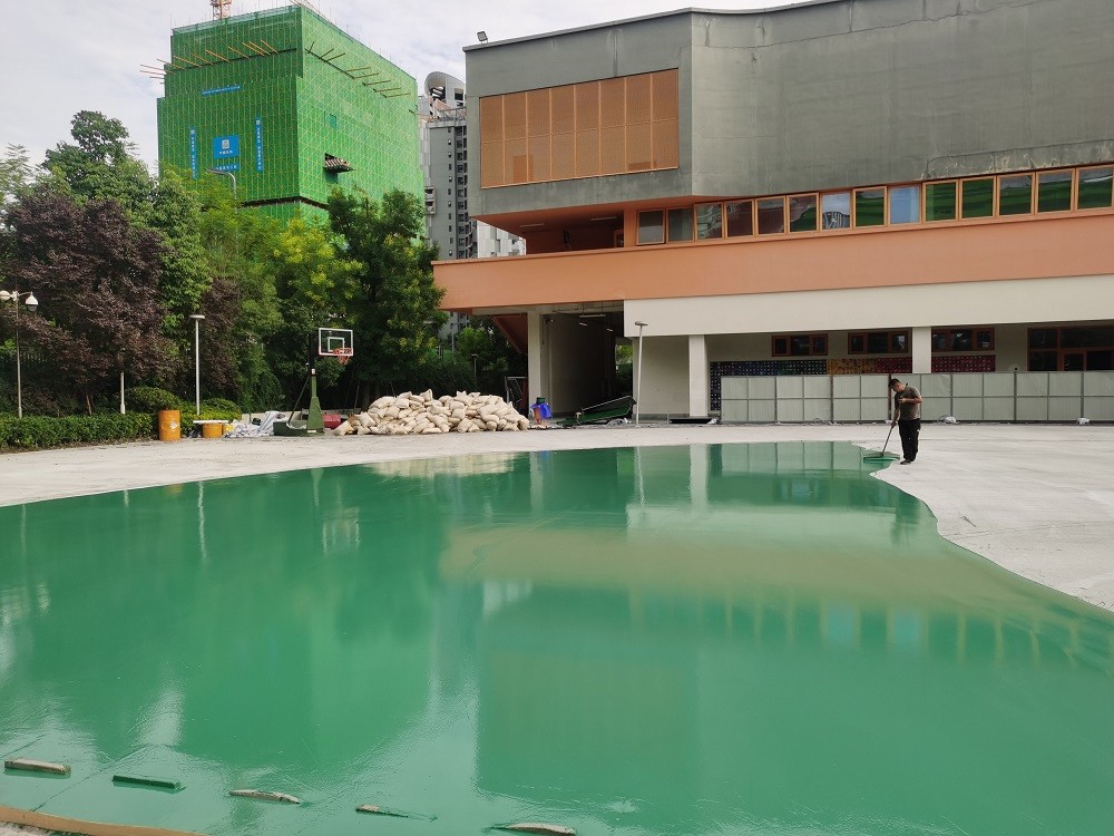 2025年8月12日天府新区麓湖小学运动场暑期维修改造工程篮球硅PU施工